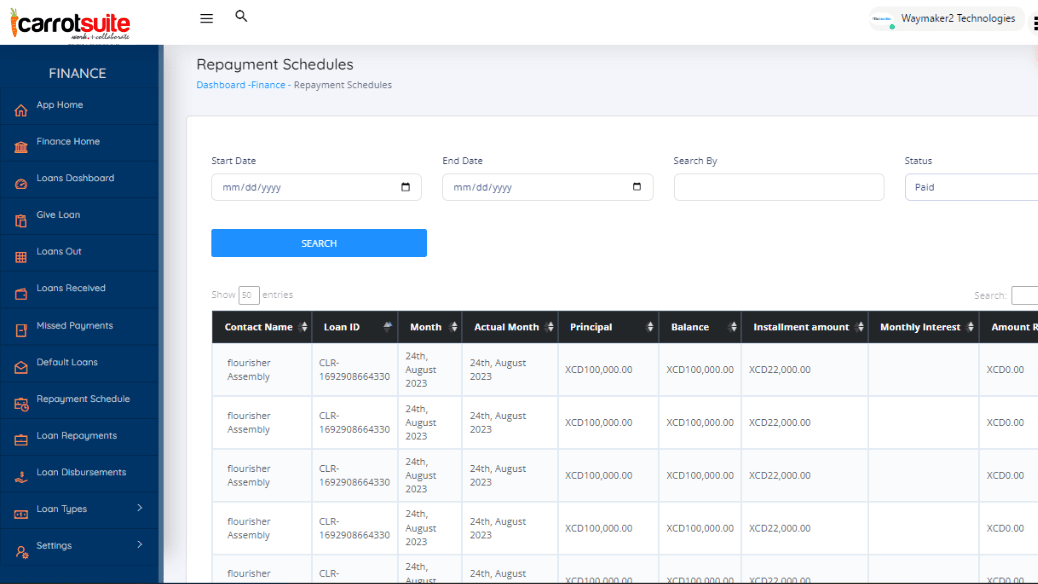 Repayment Schedule